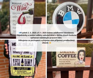 Krásná a poctivá plechová cedule Vás mile překvapí detailní grafikou, věrností barev a jemnou patinou.