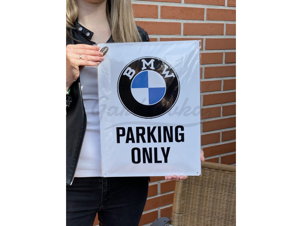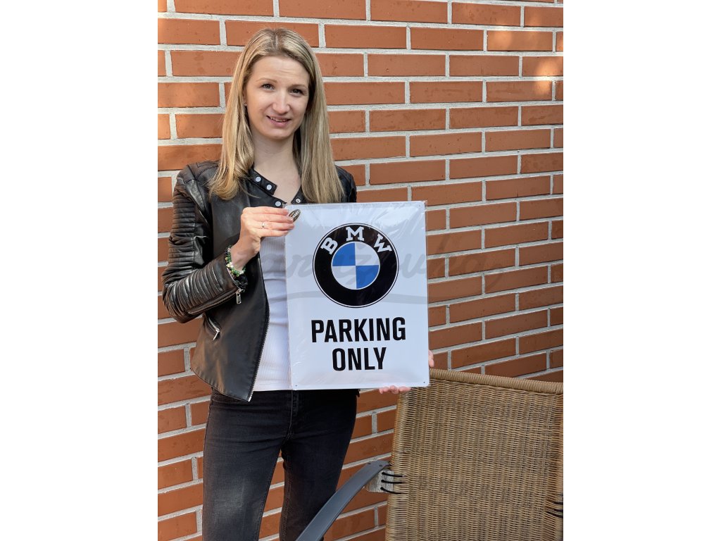 Plechová cedule BMW Parking Only bílá 40 x 30 cm