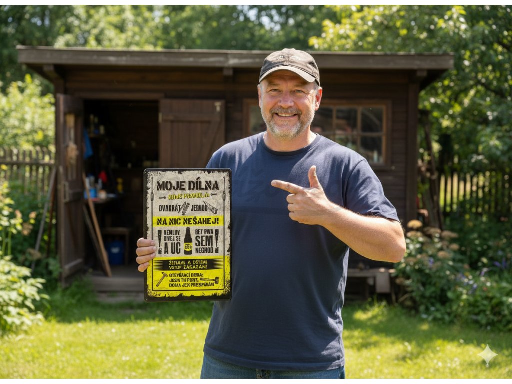 Zavěste ji tam, kde se tvoří, piluje, řeže a přemýšlí. Tahle cedule mluví za vás – a každý hned pochopí, že tady platí vaše pravidla.