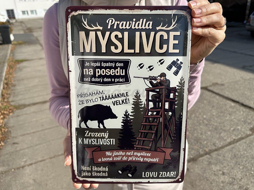 Plechová cedule Pravidla MYSLIVCE! 29 x 19 cm