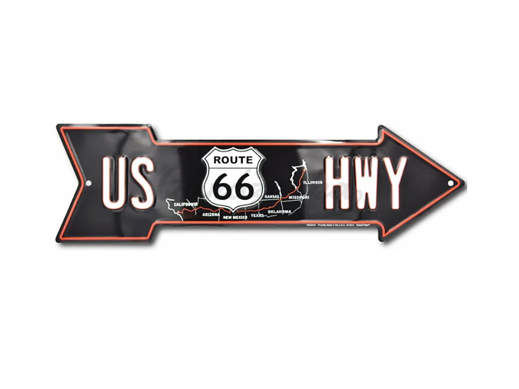 Plechová cedule US 66 Highway Arrow 15 cm x 50 cm